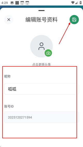 3、在编辑页面,可修改账号信息,完成后点击保存即可。