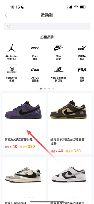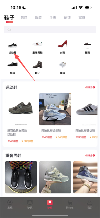 1、在驴租首页,点击运动鞋分类,进入运动鞋列表页。