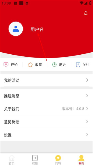 2、在个人中心页面,点击用户名区域,进入登录页面。