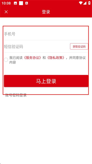3、在登录页面,填写信息,勾选协议后点击马上登录完成操作。