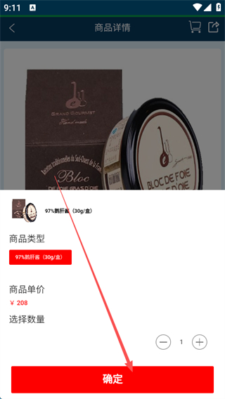 3、在商品详情页确认信息后,点击底部的确定按钮。