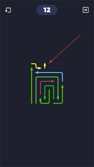 3、难度随关卡深度动态提升,箭头数量增多与迷宫结构复杂化同步推进,每一关都能带来全新的解谜思路,避免玩法固化,保持探索新鲜感。