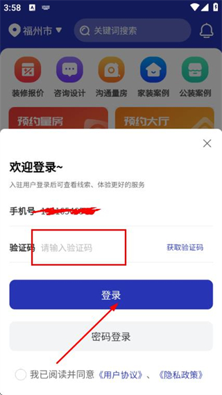 3、在验证码输入框中填写收到的验证码,点击登录完成账号的登录操作。