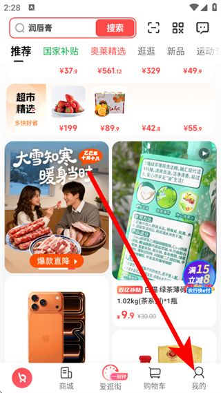 1、打开i百联,点击底部的我的,进入我的页面。
