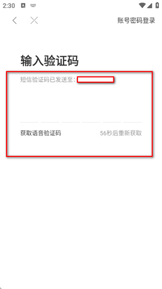 4、在输入验证码页面,将收到的验证码填入对应框内,完成登录操作。