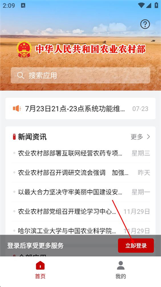 1、在农政通应用首页,点击立即登录,进入登录页面。