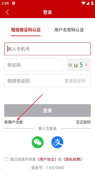2、在登录页面,点击新用户注册选项,进入注册页面。
