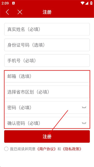 3、在注册页面,填写真实姓名和手机号等必填信息。