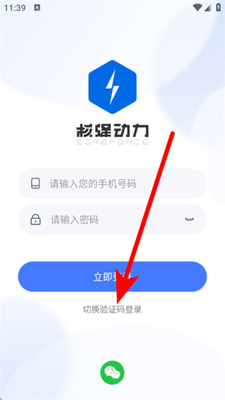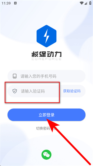 2、在登录界面,点击切换验证码登录,切换至验证码登录模式。