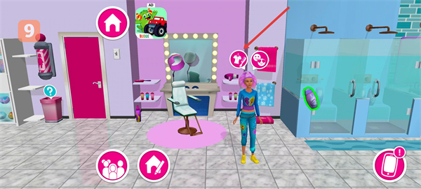 1、进入芭比娃娃屋历险的美发室场景,点击场景内的理发椅,从角色列表中挑选想要装扮的角色。