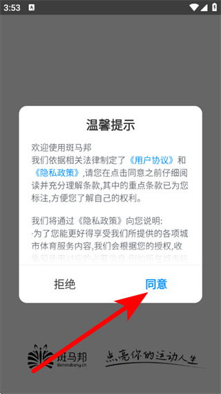 1、打开斑马邦,在温馨提示弹窗中,点击同意,进入页面。