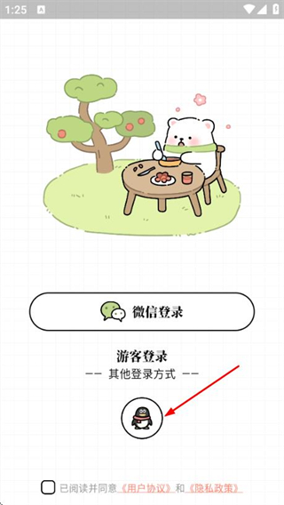 1、在使用协议隐私政策弹窗中点击同意按钮,进入登录方式选择页面。