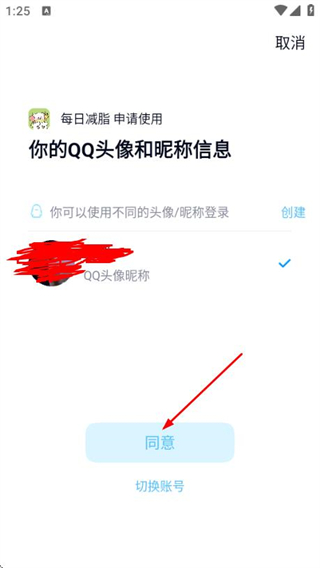 3、在QQ登录页面,点击同意,完成账号登录操作。