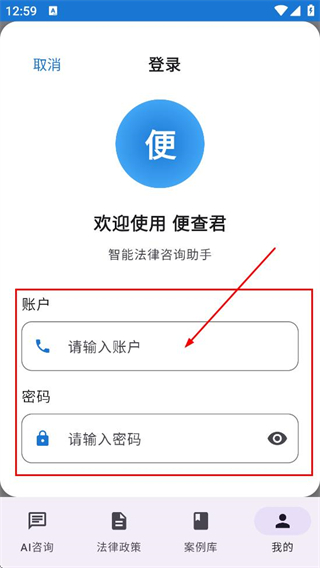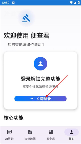 2、在个人页面,点击立即登录的按钮,进入便查君的登录页面。