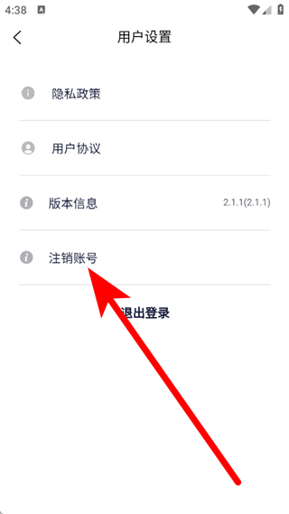 3、在用户设置页面,点击注销账号,进入注销账号页面。