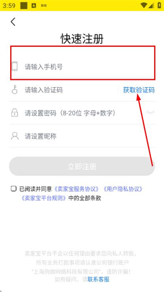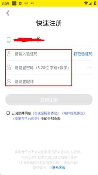 3、在注册账号页面填写验证码和密码,勾选协议后点击立即注册按钮完成账号注册操作。