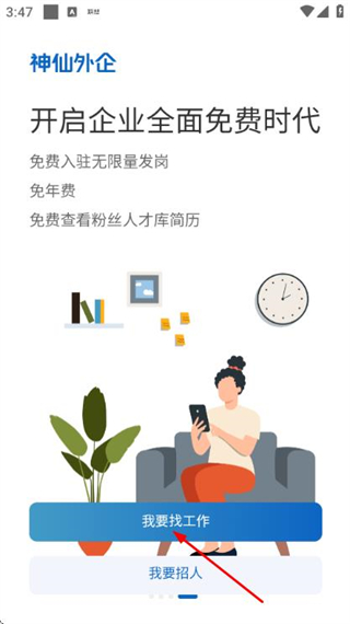 1、进入神仙外企点击我要找工作,进入登录页面。