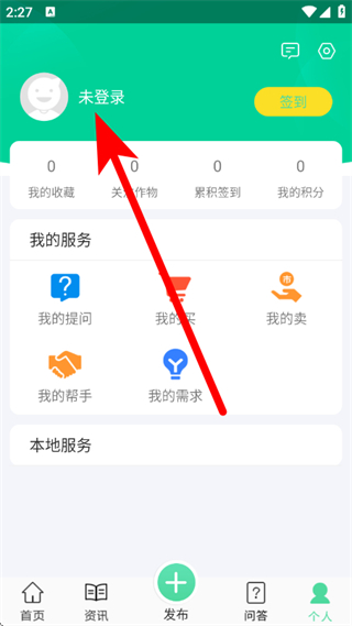 1、打开开鲁农牧业,点击底部的个人,进入个人页面。
