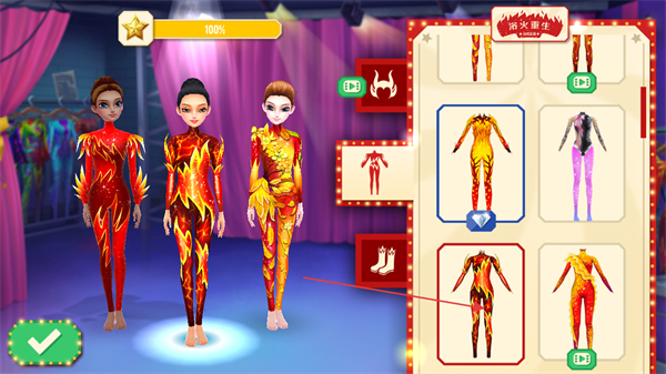 2、在装扮界面选择对应主题服装,搭配完成后点击确认,进入演出环节。