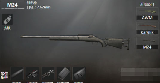 武器伤害大、手感好、稳定性强、换弹迅速,该武器是普通狙击枪,可直接从地图中捡到。M24作用是在中距离上非常好用,能准确地对准敌人的脑袋,武器外形也更加细腻。