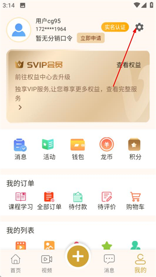 2、在个人中心页面,点击右上角的设置按钮,进入设置页面。