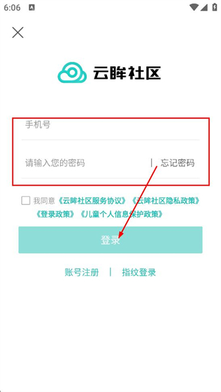 4、在账号登录页面,填写手机号与密码,点击登录,完成账号登录。
