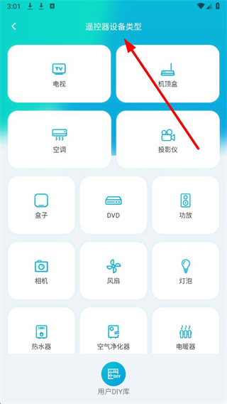 2、进入页面后,在遥控器设备类型列表里,选择要添加的设备类别,进入对应设备的品牌选择界面。