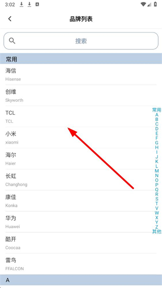 3、在品牌列表界面中,找到目标设备对应的品牌并点击,后续可按提示完成设备的配对操作。