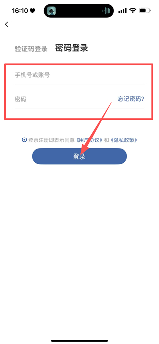 3、在登录选择页面,点击密码登录选项,切换到密码登录页面。