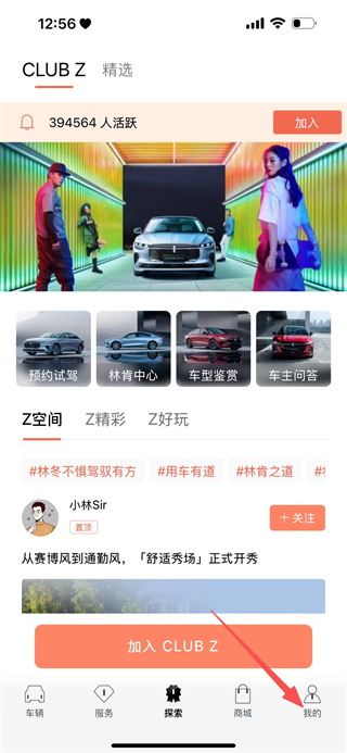 1、在林肯之道的探索页面,点击底部导航栏我的,进入个人页面。