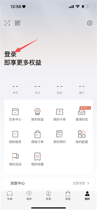 2、在个人页面,点击登录即享更多权益的区域,进入登录选择页面。