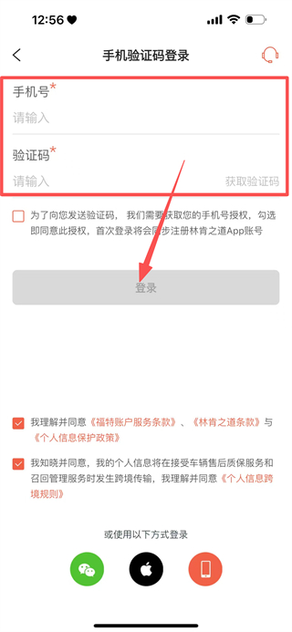 4、在手机验证码登录页面,填写手机号,验证码,点击登录,完成账号登录。