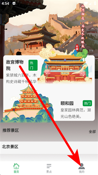 1、打开知游山水,点击底部的我的,进入我的页面。