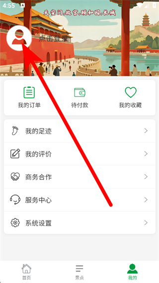 2、在我的页面,点击顶部的用户头像,进入登录界面。