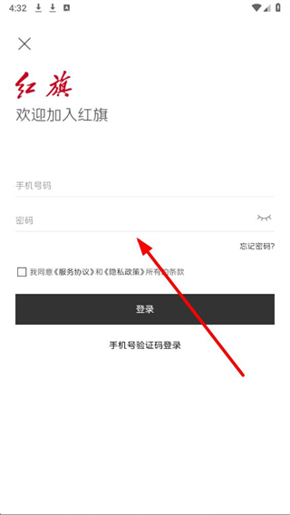 4、在密码登录界面中,输入手机号码与对应密码,勾选协议条款后点击登录按钮,即可完成密码登录操作。