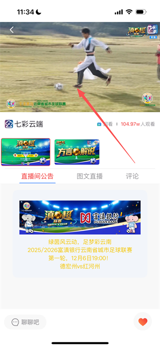 2、在直播页面,点击目标直播,进入直播播放页面。
