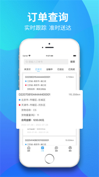 清晰展示订单接单、运输、签收全状态,支持运输详情查询与单据上传,历史订单随时追溯,管理更省心高效。