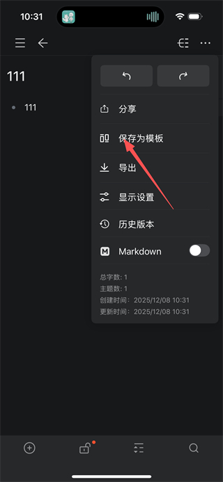 4、在操作菜单中,点击保存为模板选项,可将当前笔记保存为模板。