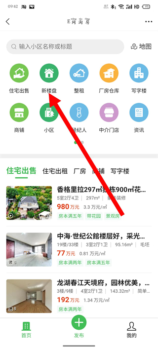 2、在房产页面,点击新楼盘分类,进入新楼盘列表页面。