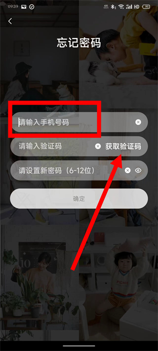 4、在密码找回页面,输入手机号码,点击获取验证码。