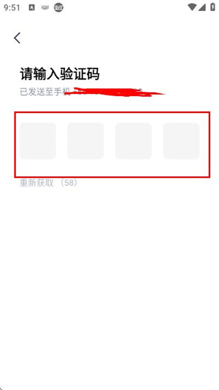 3、在输入短信验证码页面填写收到的验证码,完成账号的登录操作。