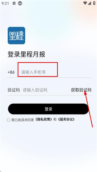 2、在手机验证登录页面填写手机号,勾选协议后,点击获取验证码。