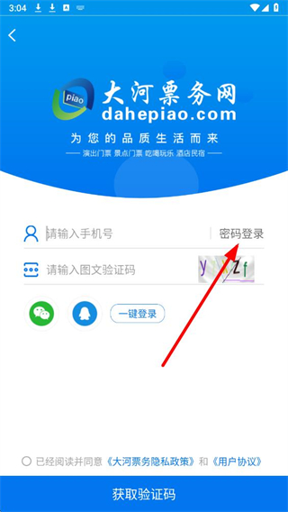 3、在登录页面中,点击密码登录选项,切换到密码登录界面。