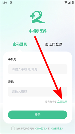 2、在登录界面,点击立即注册,进入账号注册页面。