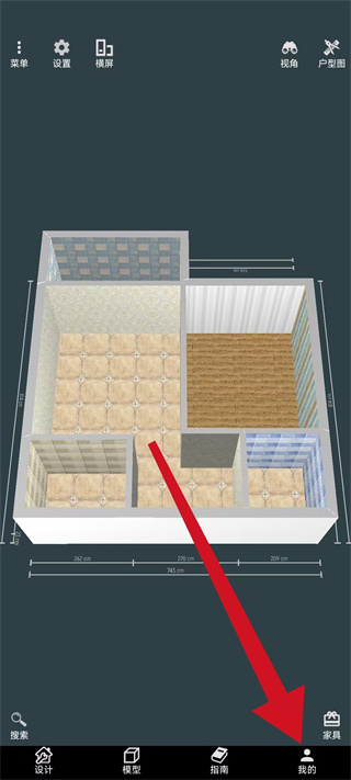 1、打开家炫3D家装设计APP,在设计界面点击底部导航栏最右侧的我的,进入个人中心页面。