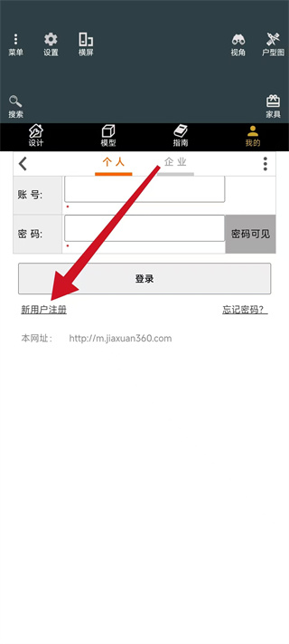 2、在个人中心的登录页面,点击新用户注册,进入用户注册页面。