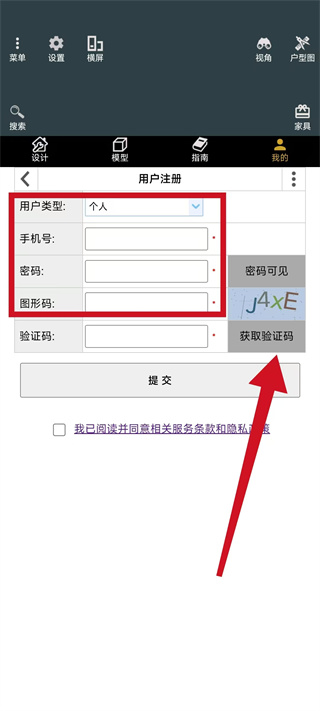 4、点击获取验证码,将收到的短信验证码填入,勾选我已阅读并同意,点击提交,完成账号注册。