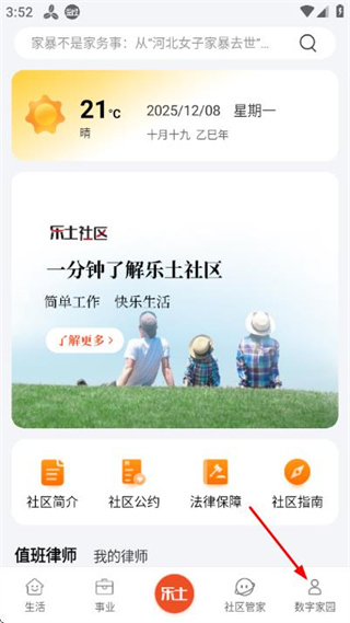 2、在数字家园页面点击登录乐土账号,进入登录页面。
