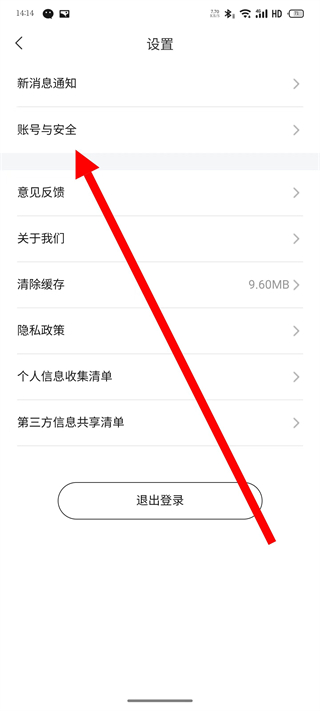 3、在设置页面,选择账号与安全,进入账户与设置页面。