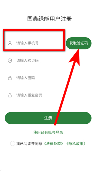 1、打开国鑫绿能首页,点击底部的我的,进入账号登录界面。